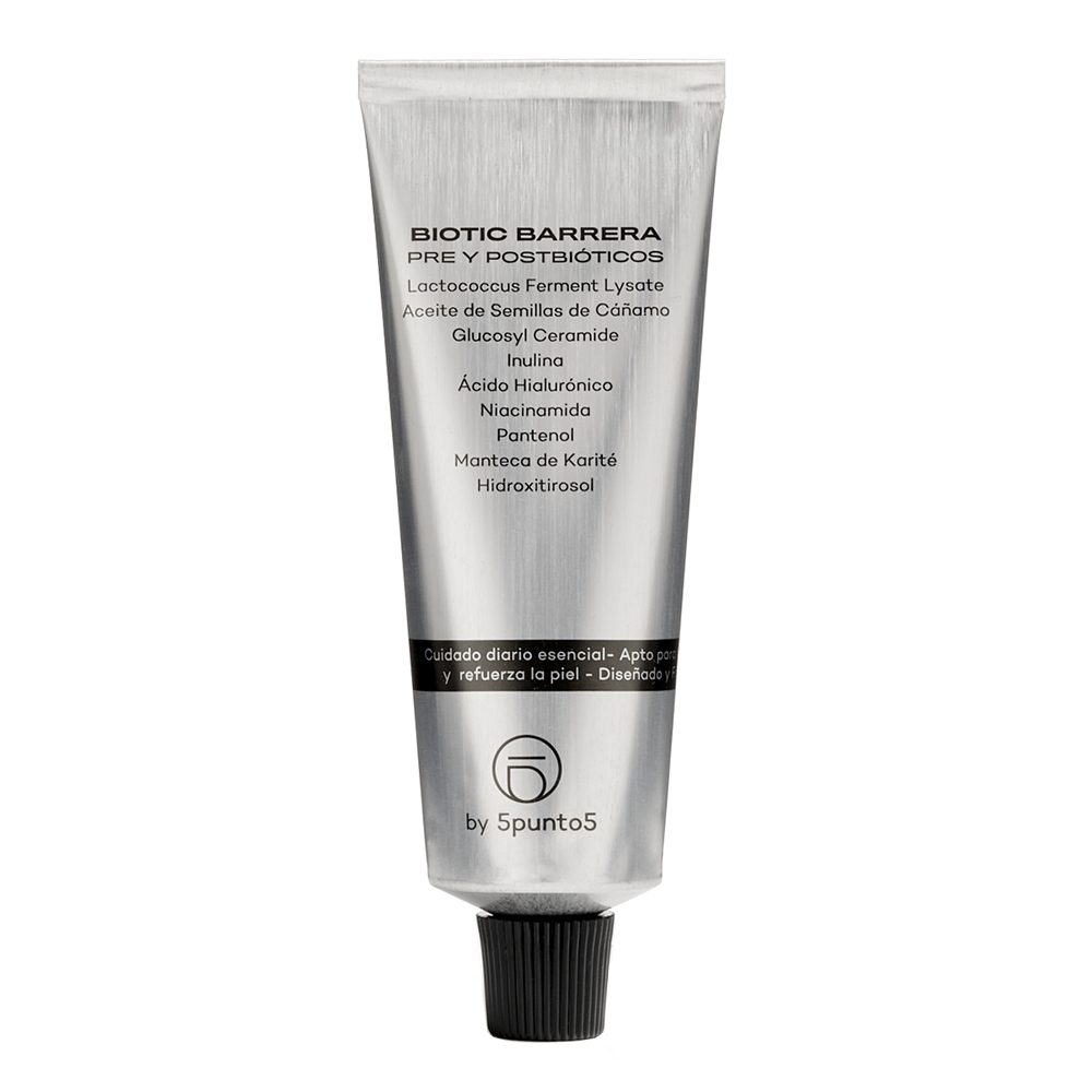Nuestra crema hidratante de textura ligera Biotic Barrera de 5punto5 es un producto imprescindible en el cuidado de cualquier tipo de piel. Esta crema está cargada de activos que mantienen, mejoran y refuerzan la barrera cutánea, convirtiéndose así en el cuidado más importante y esencial de la rutina para obtener una piel sana y bonita.