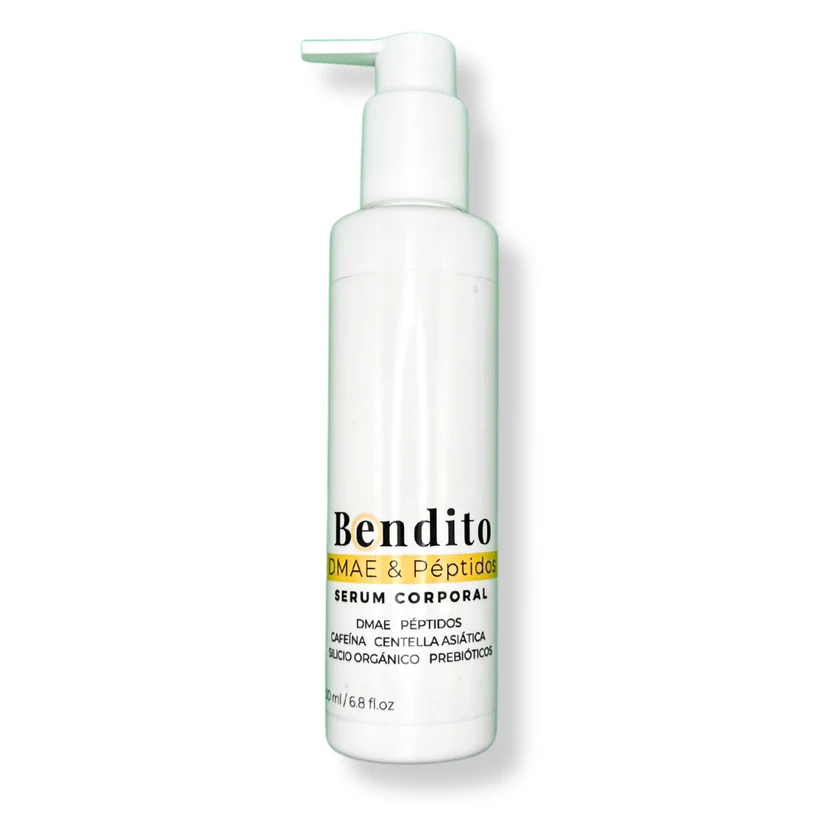 Bendito DMAE & Péptidos,  es un serum corporal reafirmante, antiflacidez, con efecto tensor y lipolítico. Su completa fórmula aumenta la firmeza de la piel y mejora las pieles con celulitis y la piel de naranja.