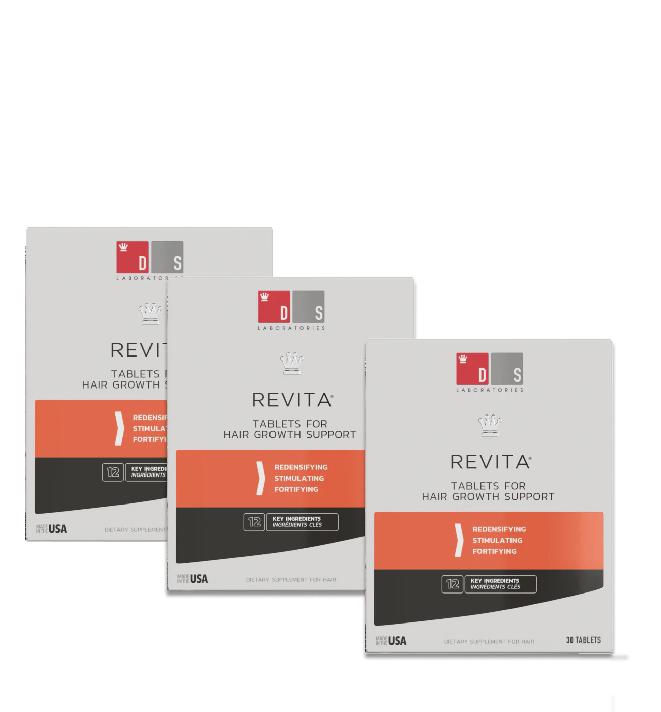 La fórmula patentada de Revita Tabletas contiene más de 10 ingredientes activos, entre los que se encuentran el zinc, que contribuye a la síntesis de proteínas y ayuda a proteger el cabello contra el daño oxidativo, la biotina que convierte los nutrientes en energía y contribuye al correcto crecimiento de un cabello fuerte, la queratina que proporciona fuerza y mejora la flexibilidad del cabello y el hierro que proporciona oxígeno a la raíz del cabello y ayuda a reducir su caída.