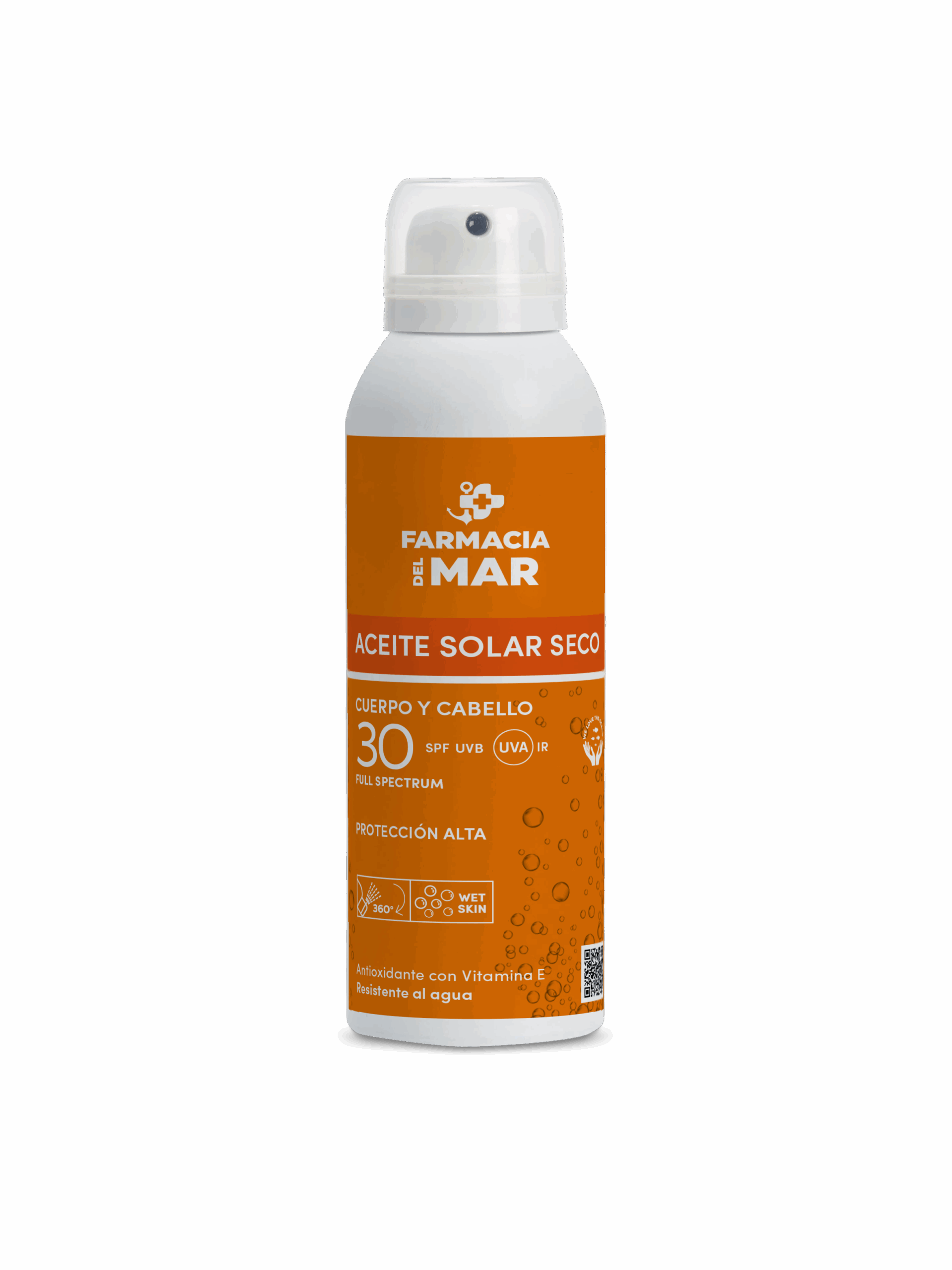 Aceite solar con SPF 30 en formato spray que protege e hidrata cabello y piel dejando una sensación libre de grasa y que puede utilizarse tanto en seco como en piel mojada. Es resistente al agua y al sudor.