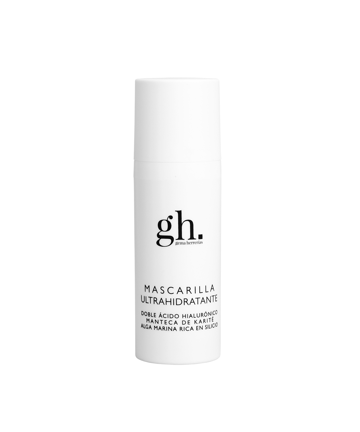 Mascarilla facial ultrahidratante formulada con una combinación de dos formas de ácido hialurónico de alto y bajo peso molecular, manteca de karité, alga marina rica en silicio y otros extractos (abedul, granada y manzanilla), proporciona hidratación intensa y de larga duración, sensación de confort y frescor inmediato, aportando luminosidad a la piel.