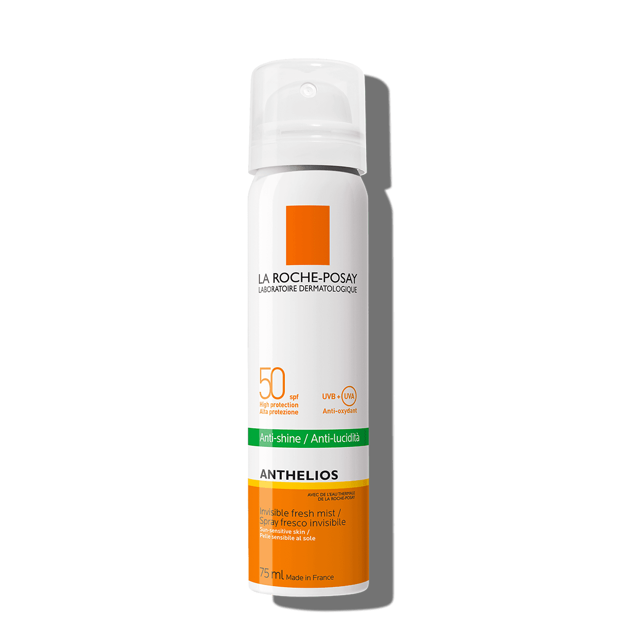 Anthelios Bruma Invisible de Rostro Anti-Brillos SPF50+ es un protector solar de rostro de muy alta protección de amplio espectro UVA/UVB, que ayuda a prevenir el estrés oxidativo derivado de la exposición a los rayos infrarrojos y a la polución. Una bruma fresca invisible indicada para aplicar en cualquier momento, incluso sobre el maquillaje.