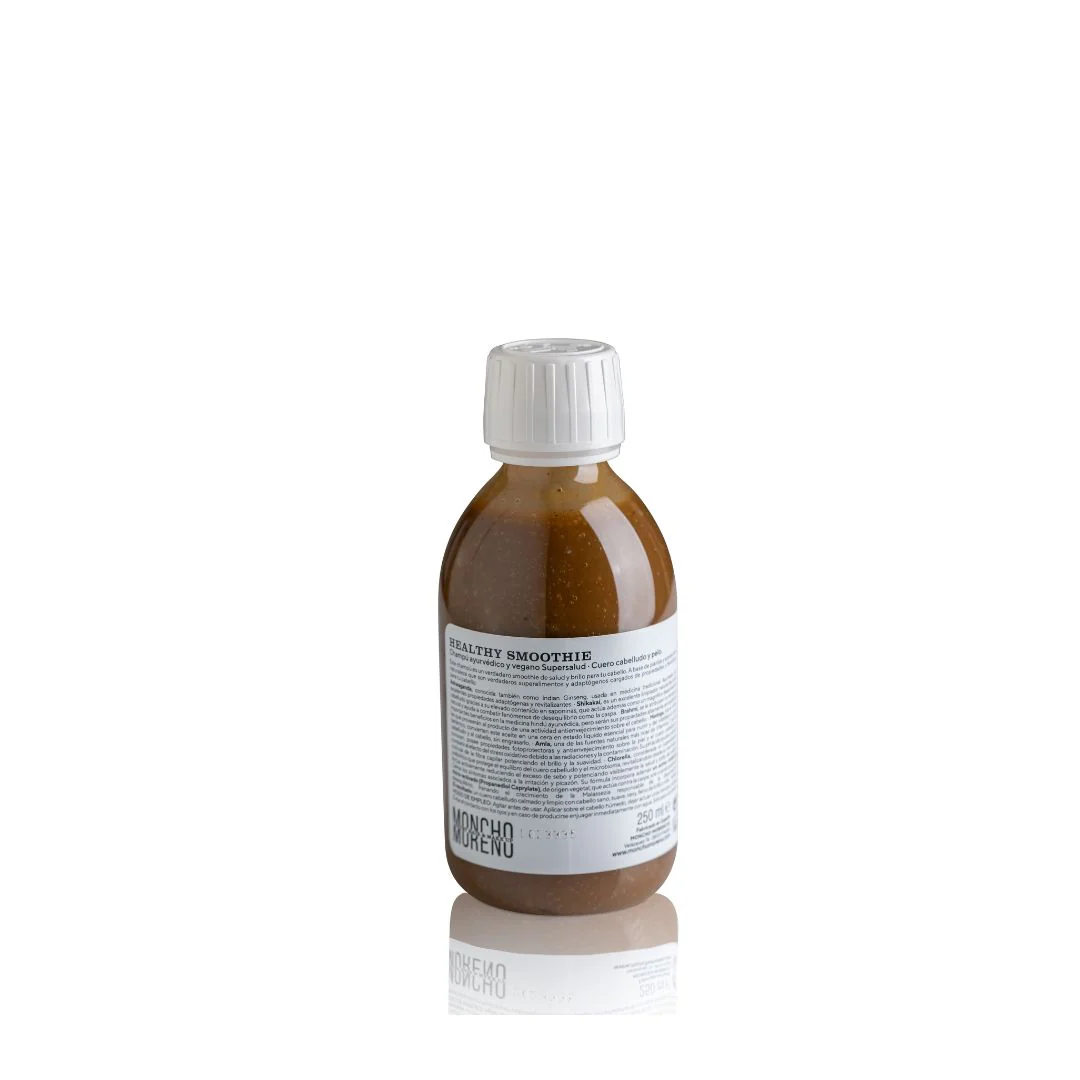 Moncho Moreno Healthy Smoothie es un verdadero smoothie de salud y brillo para tu cabello. A base de plantas y aceites de la naturaleza que son verdaderos superalimentos y adaptógenos cargados de propiedades y beneficios para tu cabello. Tiene un aroma freso y elaborado con 11 aceites esenciales 100% naturales que aportan un aroma único especialmente seleccionados por sus beneficios en el cabello y en aromaterapia. Induce a disfrutar del frescor de los cítricos y notas picantes del jengibre que capturan los sentidos. Un corazón intenso y cálido de clavo, terminando en una base leñosa de cedro para un efecto relajante y reconfortante.