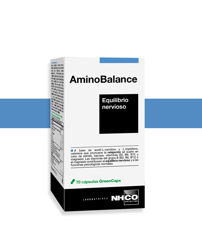 AminoBalance. Equilibrio Nervioso. A base de acetil-L-carnitina y L-triptófano, valeriana que promueve la relajación (el sueño en caso de estrés), bacopa, vitaminas B3, B6, B12 y magnesio. Las vitaminas del grupo B (B3, B6, B12) y el magnesio contribuyen al equilibrio nervioso y a las funciones psicológicas normales. Apto para vegetarianos y veganos.