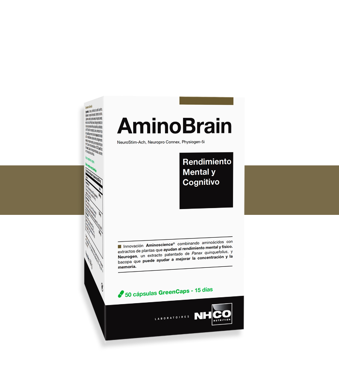 AminoBrain. Rendimiento Mental y Cognitivo. Innovación Aminoscience® combinando aminoácidos con extractos de plantas que ayudan al rendimiento mental y físico. Neurogen, un extracto patentado de Panax quinquefolius, y bacopa que puede ayudar a mejorar la concentración y la memoria. Apto para vegetarianos y veganos