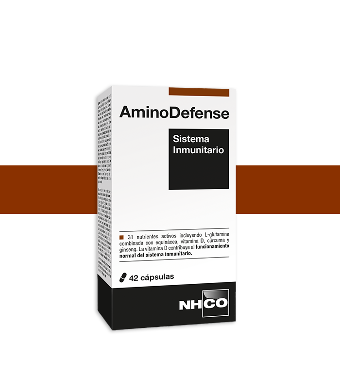 AminoDefense. Sistema Inmunitario. 31 nutrientes activos incluyendo la L-glutamina, equinácea, cúrcuma, vitamina D y ginseng. La vitamina D contribuye al funcionamiento normal del sistema inmunitario.
