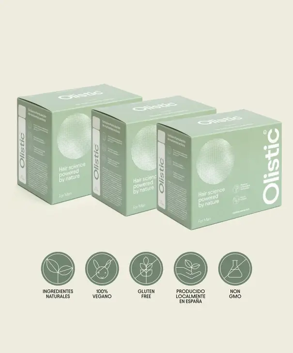 Olistic Men es la primera fórmula bebible que aborda las 6 causas principales que provocan el debilitamiento y la caída del cabello (predisposición genética y cambios hormonales, déficits nutricionales, inflamación crónica, factores ambientales, estrés psico-emocional y envejecimiento) y favorece el bienestar general de la persona ya que trabaja con la certeza de que cuerpo y mente están relacionados.