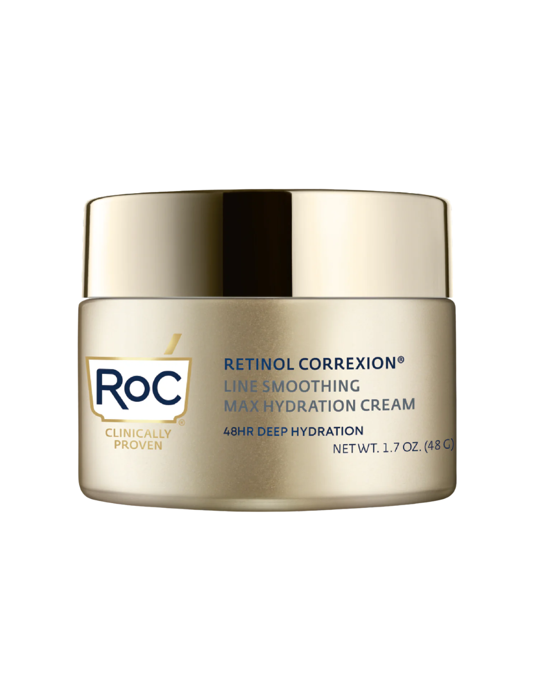 RoC Crema Hidratación Máxima es una crema facial hidratante antiedad diseñada para ofrecer hidratación profunda y un alisado de la piel con una fórmula que combina dos ingredientes dermatológicos altamente recomendados: retinol puro y ácido hialurónico. Esta crema de textura rica, pero de fácil absorción trabaja para mantener la piel hidratada hasta 48 horas, al mismo tiempo que el retinol ayuda a mejorar la apariencia de líneas finas, arrugas y textura irregular con el uso continuado. Su uso continuo también contribuye a una piel firme y suave, revelando un cutis más radiante y con un aspecto más joven tanto de día como de noche.